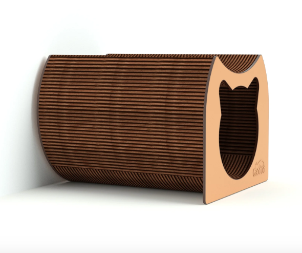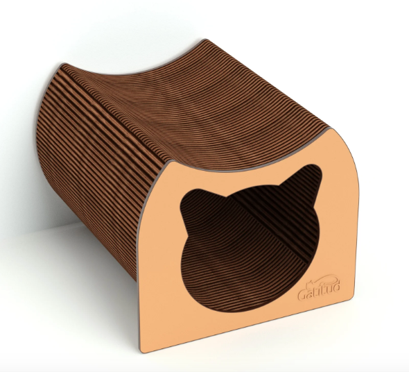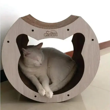 Este diseño en cartón corrugado no solo es ecológico y ligero, sino que también atrae a los gatos debido a su textura, perfecta para rascarse, lo cual les ayuda a mantener sus uñas en buen estado y a reducir el estrés.