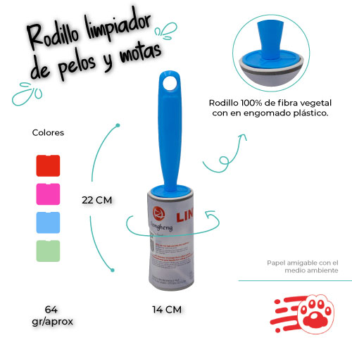 Rodillo Limpiador De Pelos y Motas Mayoristas PetOutlet Rodillo perfecto para eliminar el pelo de perros y gatos de las cobijas, ropa, muebles, etc sin dañar alguna cosa. Diseño de rodillo reemplazable cuando se agote el existente. Hecho de material de alta calidad, resistente y duradera. Tamaño pequeño, fácil de transportar, y cómodo de usar. El mango es duradero y proporciona un agarre cómodo