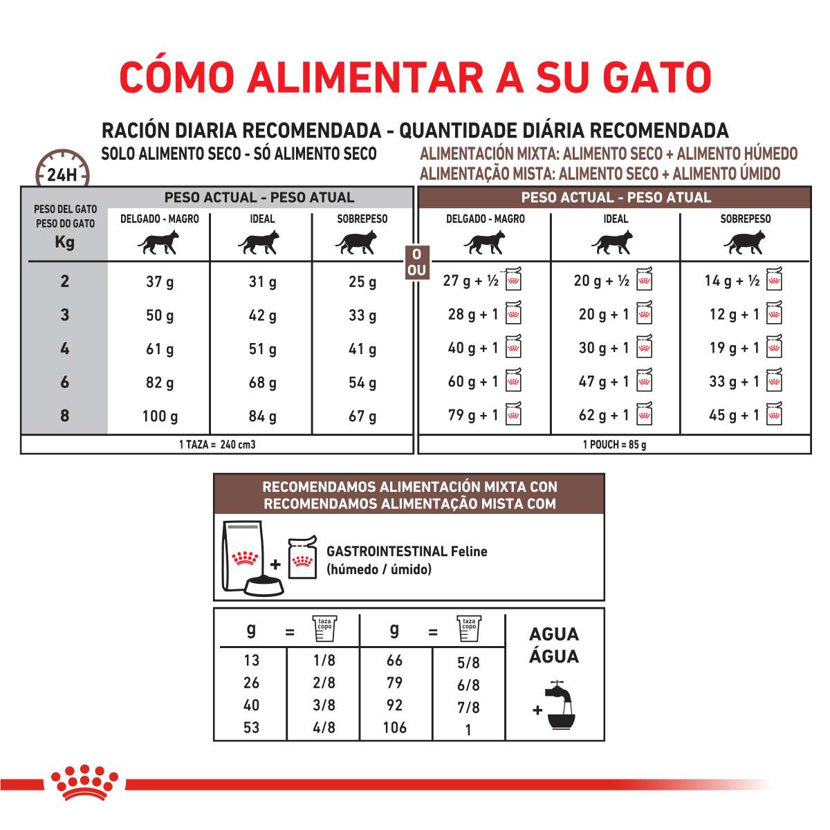 Royal Canin Gastrointestinal Feline contribuye a lograr una máxima seguridad digestiva, aporta una alta densidad energética que permite cubrir los requerimientos energéticos del gato, y promueve la recuperación del peso ideal durante el período de convalecencia.