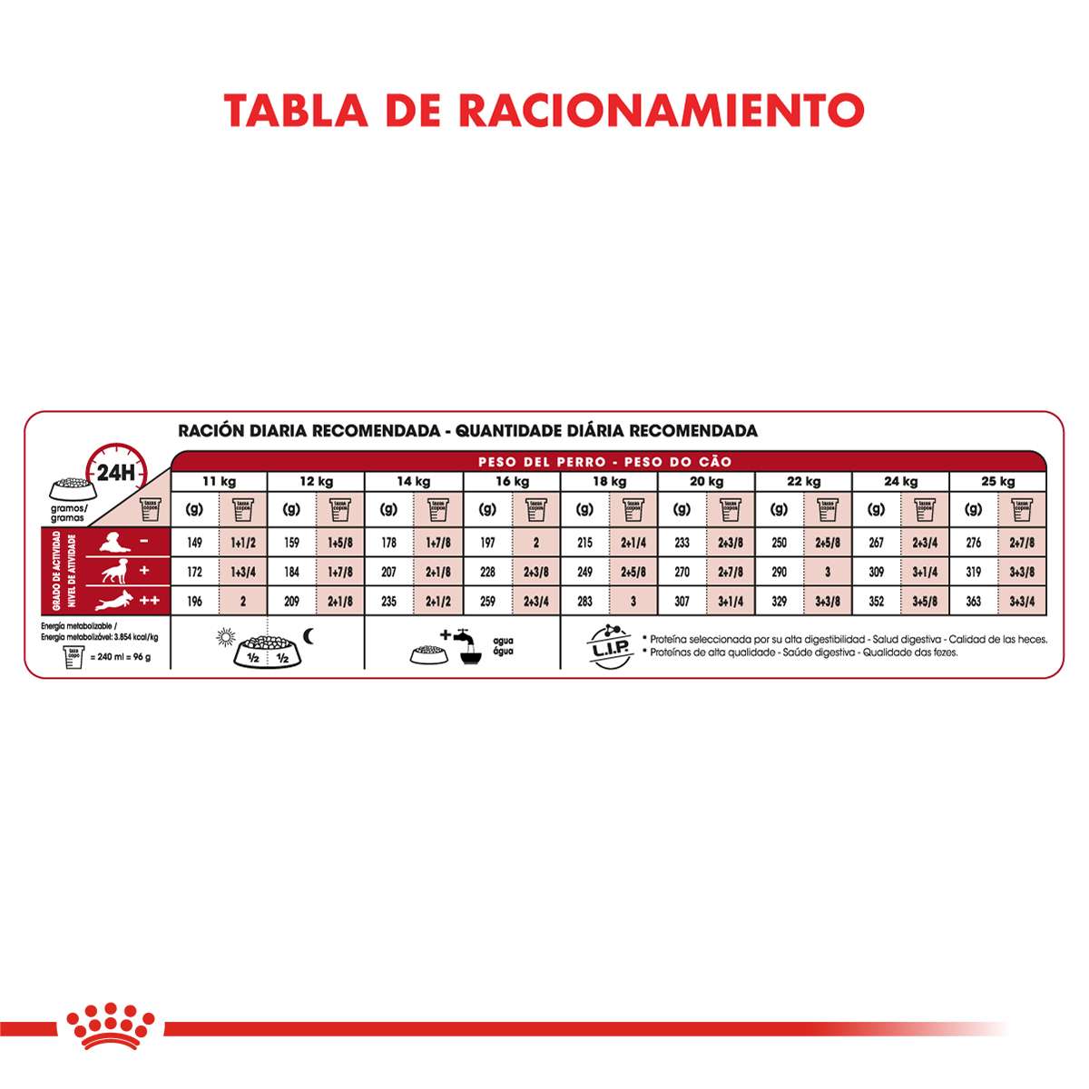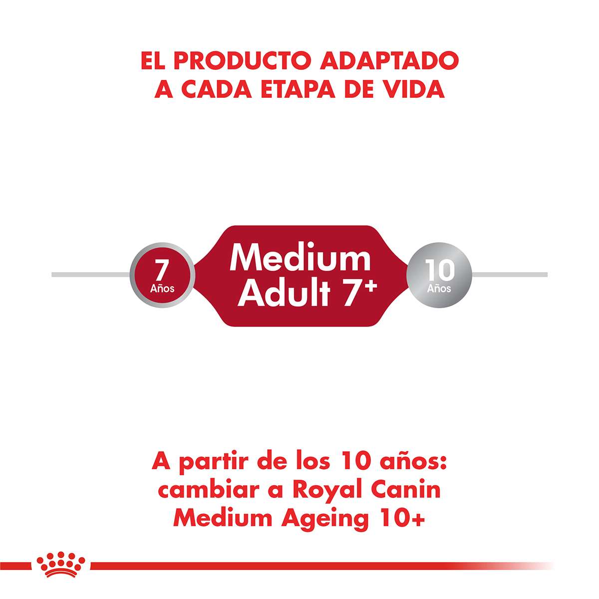 Alimento completo para perros adultos de talla mediana (de 11 a 25 kg). Desde los 12 meses hasta los 7 años de edad.
