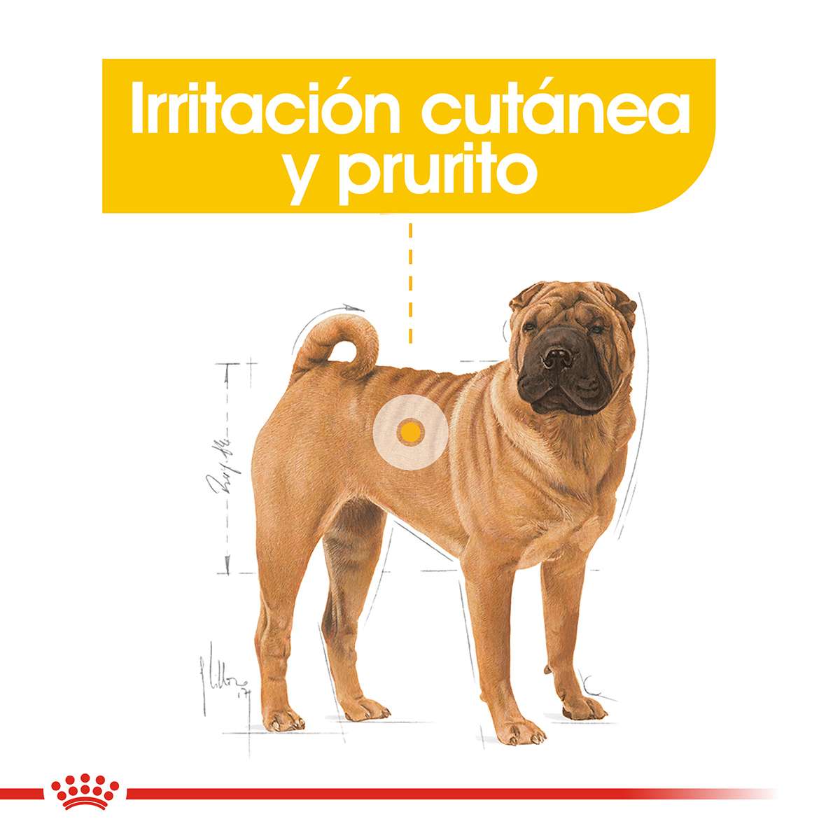 Alimento para perros adultos y maduros de talla mediana (de 11 a 25 kg) propensos a la irritación cutánea y al prurito. A partir de los 12 meses de edad.