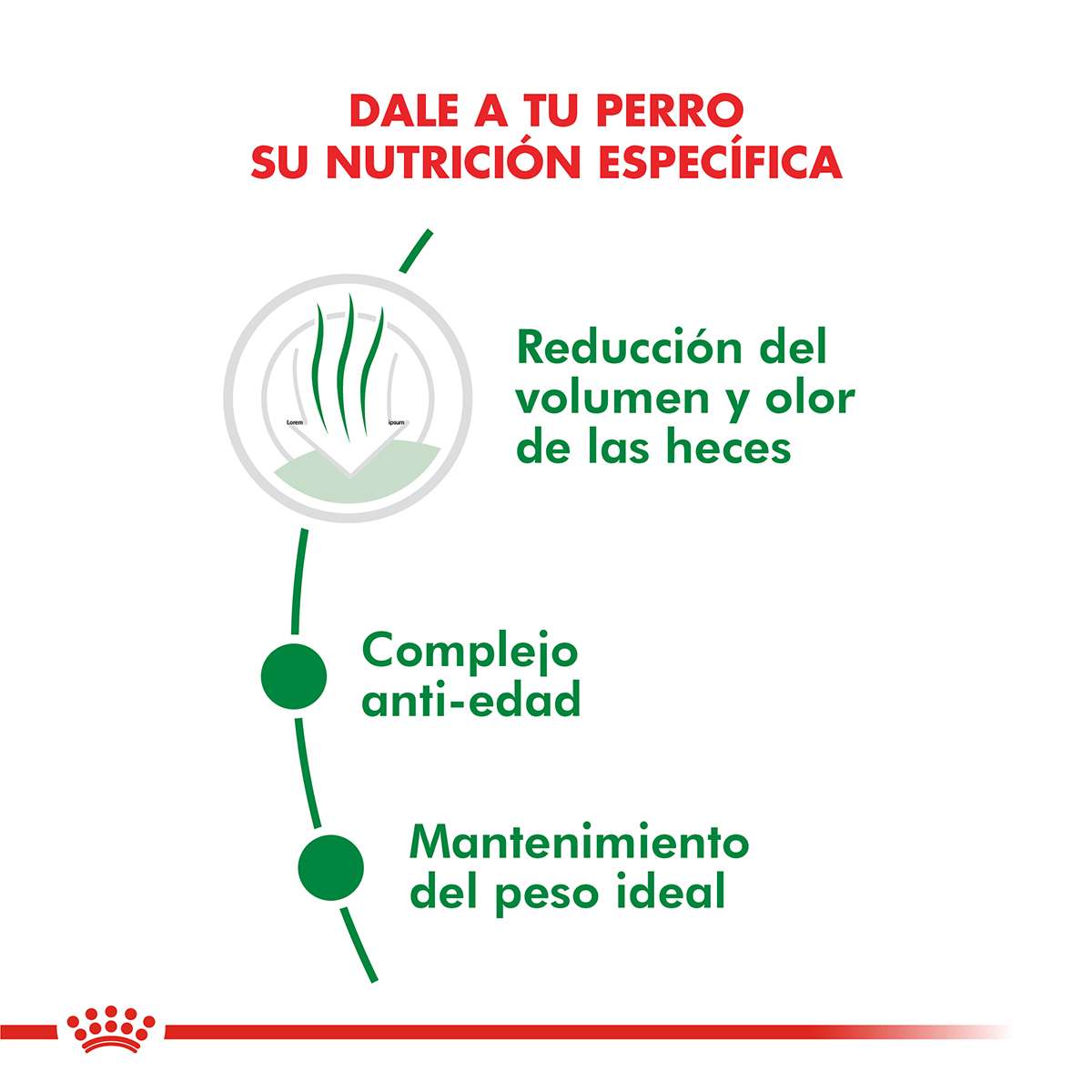 Contribuye a mantener una condición corporal ideal, gracias a un contenido calórico adaptado que cubre las reducidas necesidades energéticas de los perros de talla pequeña que viven principalmente en el interior del hogar.