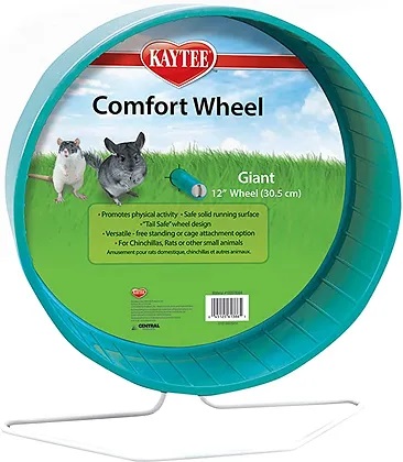 La rueda de confort Kaytee presenta una superficie segura y sólida, un funcionamiento Silencioso y un diseño “seguro para la cola”, que permite a las mascotas entrar y salir fácilmente. Cada rueda viene con un soporte de alambre y un clip de fijación.