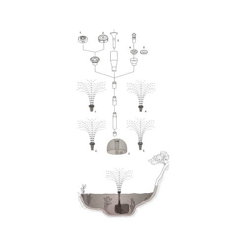 Set de cabezales para conectar a bomba de agua, para funcionar como fuente en estanques de jardín.