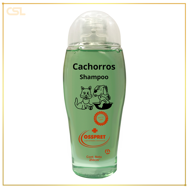 Antiséptico, antiseborreico, desodorizante. PH controlado. Higiene en general. Especialmente indicado para cachorros caninos y felinos. DOSIS Y FORMA DE USO: Mojar el animal completamente y colocar shampoo frotando suavemente, dejar actuar la espuma durante 2 o 3 minutos y enjuagar cuidadosamente. Una cucharada sopera del producto es suficiente para bañar un cachorro de raza mediana. Bañar semanalmente o a criterio veterinario.