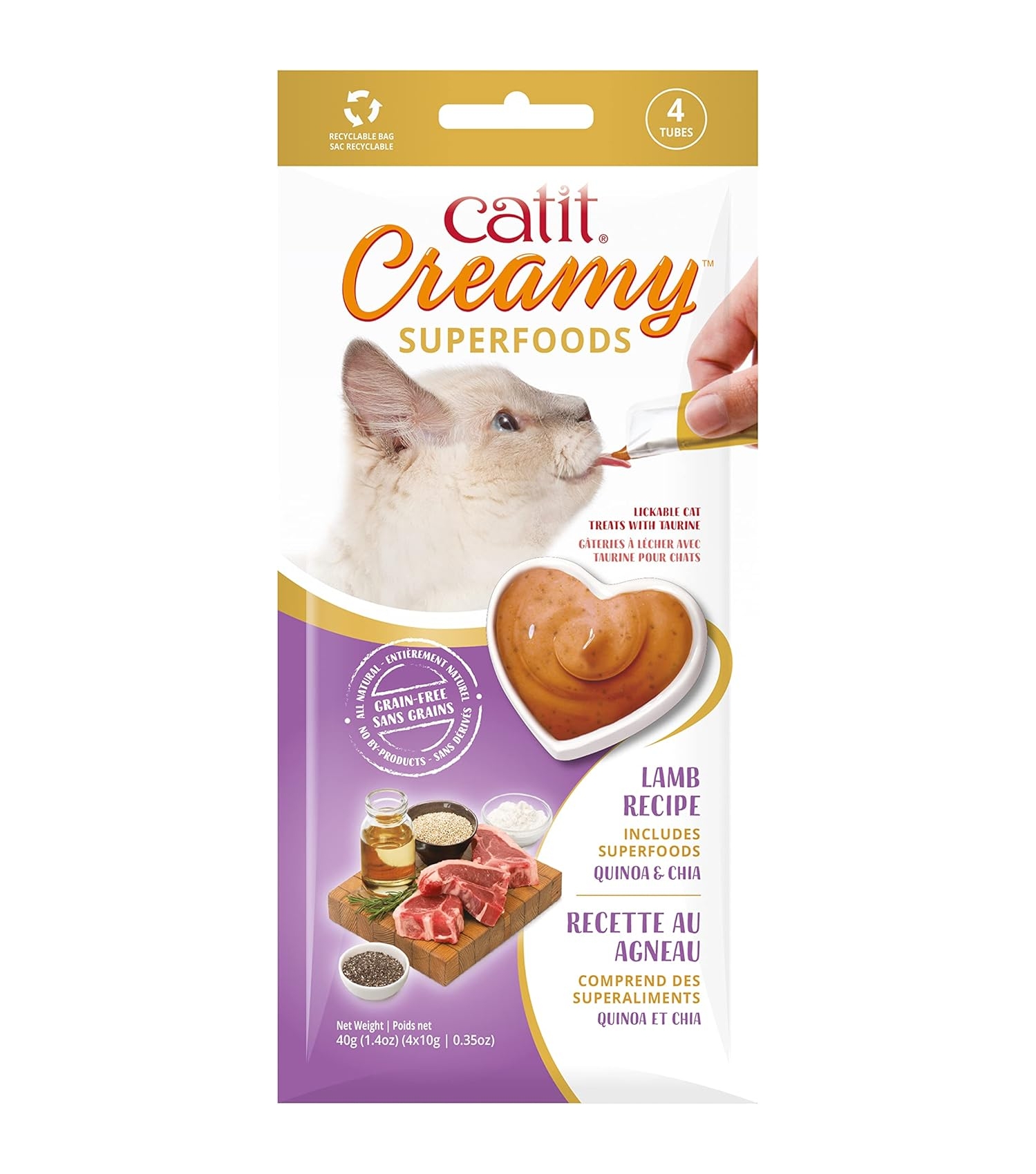 Perfecto para ofrecer solo como un premio especial o como aderezo para el pienso habitual, este producto es 100% libre de maíz, trigo, soja, potenciadores del sabor, colorantes y conservantes artificiales. Cada paquete incluye 4 prácticos tubos de Catit Creamy con superalimentos, garantizando frescura y calidad en cada porción.