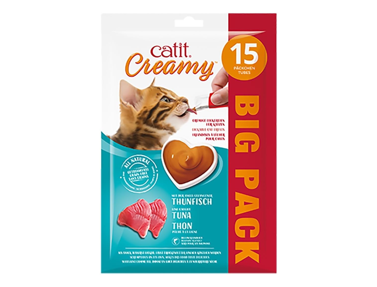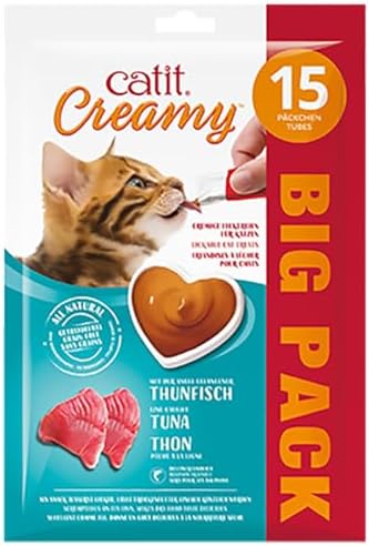 snack saludable para gatos: Catit Creamy Atún es el snack saludable para gatos ideal para consentir a tu mascota. Este delicioso premio, presentado en prácticos sobres de 10 g, combina un sabor irresistible con ingredientes de alta calidad, perfectos para complementar la dieta de tu felino.