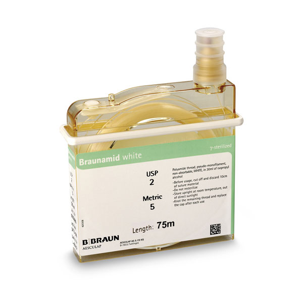 Debido a su construcción de polyfil, el hilo Braunamid es considerablemente más flexible que las suturas monofil. La sutura consiste en una gran cantidad de finos hilos retorcidos cubiertos por una cubierta de poliamida homogénea, lisa y sin costuras.