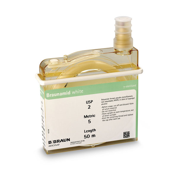 Debido a su construcción de polyfil, el hilo Braunamid es considerablemente más flexible que las suturas monofil. La sutura consiste en una gran cantidad de finos hilos retorcidos cubiertos por una cubierta de poliamida homogénea, lisa y sin costuras.