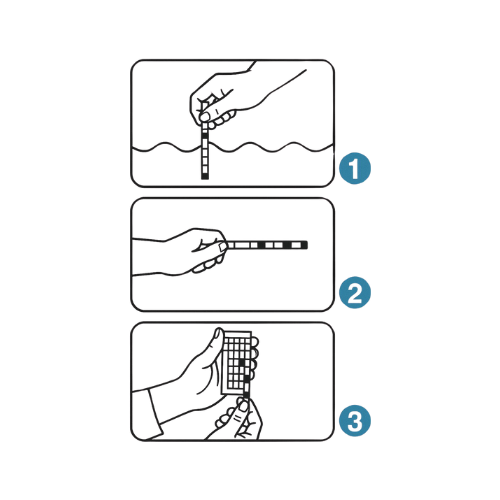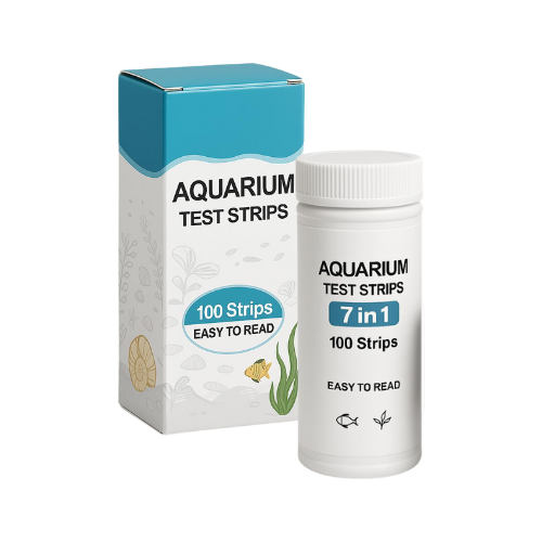 Pote con 100 tirillas reactivas para medir en el agua del acuario nitratos, nitritos, cloro, GH, alcalinidad total, KH y pH.