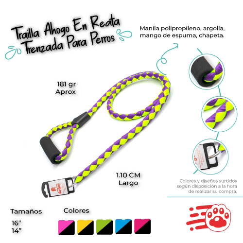 Traílla Ahogo Neón Trenzada Para Perros Mayoristas PetOutlet ideales para el paseo y control de las mascotas, con mango suave que evita lastimar a la persona, y material suave para la mascota.