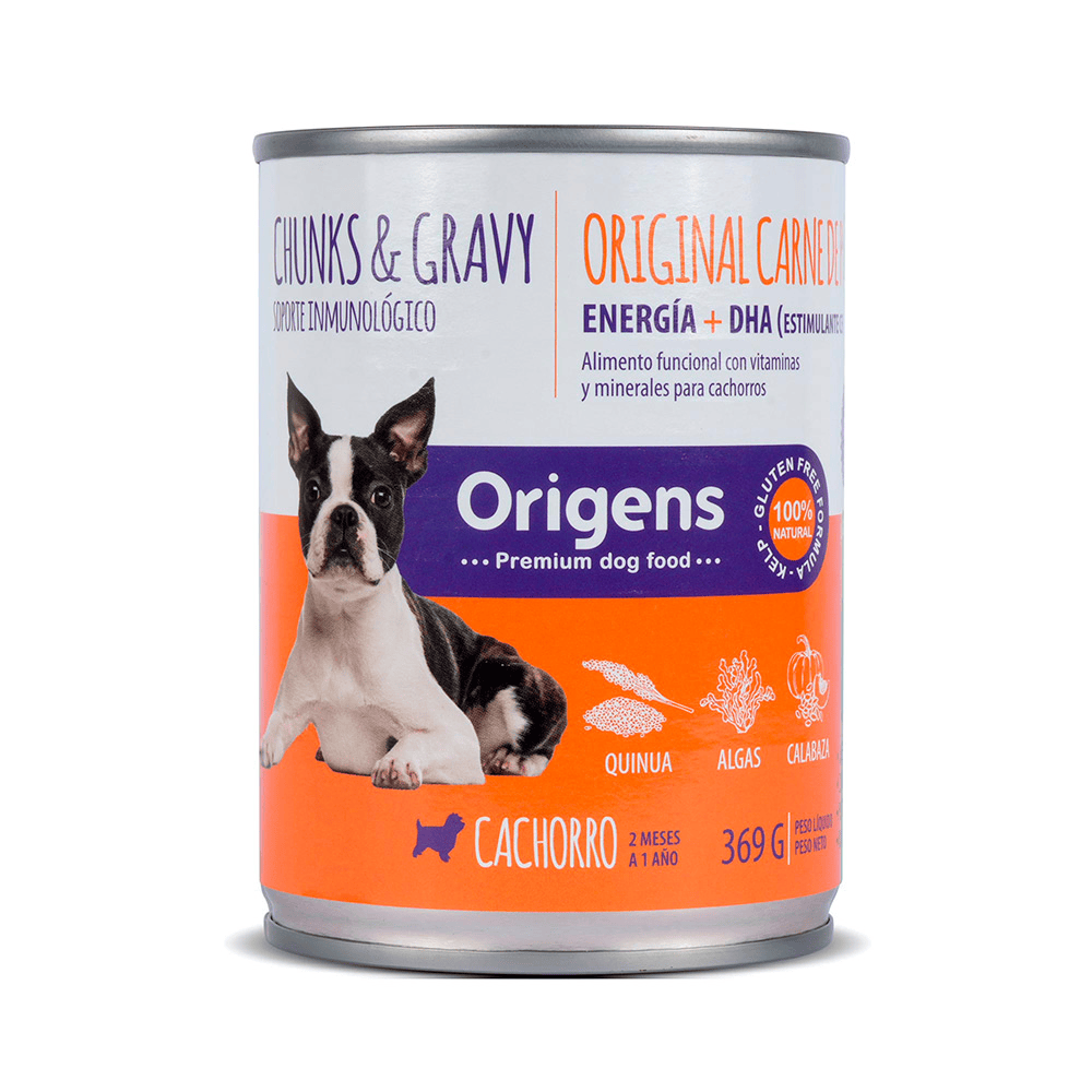 Los Trozos de Pollo para Cachorros Origens 369 g son una comida húmeda especialmente formulada para satisfacer las necesidades nutricionales de tu cachorro. 100% natural, rica en proteínas y libre de gluten y colorantes artificiales. ¿Buscas más? Descubre nuestra comida húmeda para cachorros y otros productos diseñados para su crecimiento y salud.