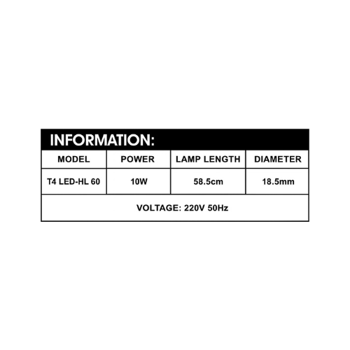 El tubo mide 58,5cm y tiene una potencia de 10W.