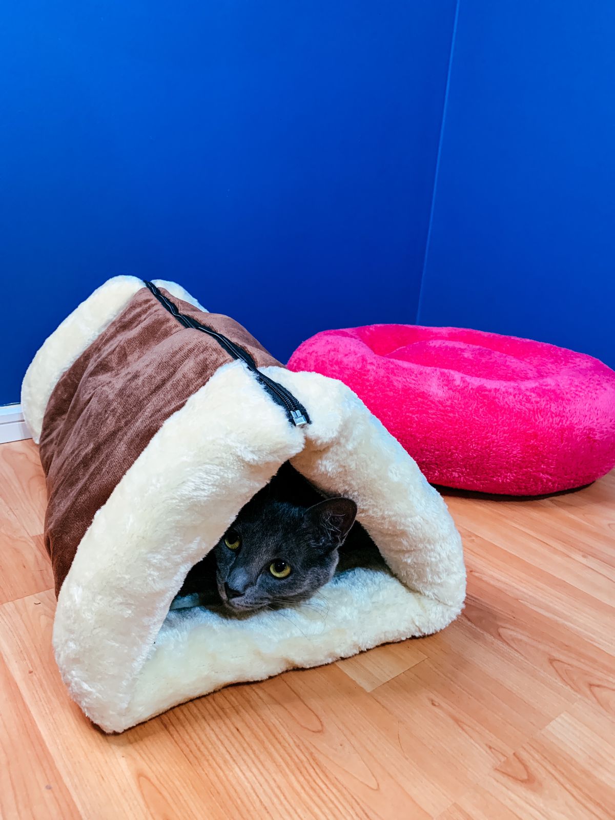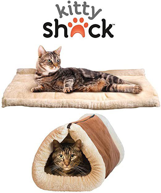2 en 1 Kitty shack está diseñado exclusivamente para mantener a su mascota abrigada, acogedora y cómoda. El núcleo termoreflectivo refleja el calor del cuerpo de su mascota y los rodea en una cápsula de calor constante. El interior Faux Sherpa es suave y cómodo, y atrae el pelo de las mascotas, lo que es ideal para mantener las superficies limpias y sin pelo. Se puede usar como una tienda de campaña o se puede descomprimir para usar como una alfombra o manta plana. La cremallera duradera le permite desplegar la carpa en una alfombra en segundos. Se puede lavar a máquina, solo con secado al aire