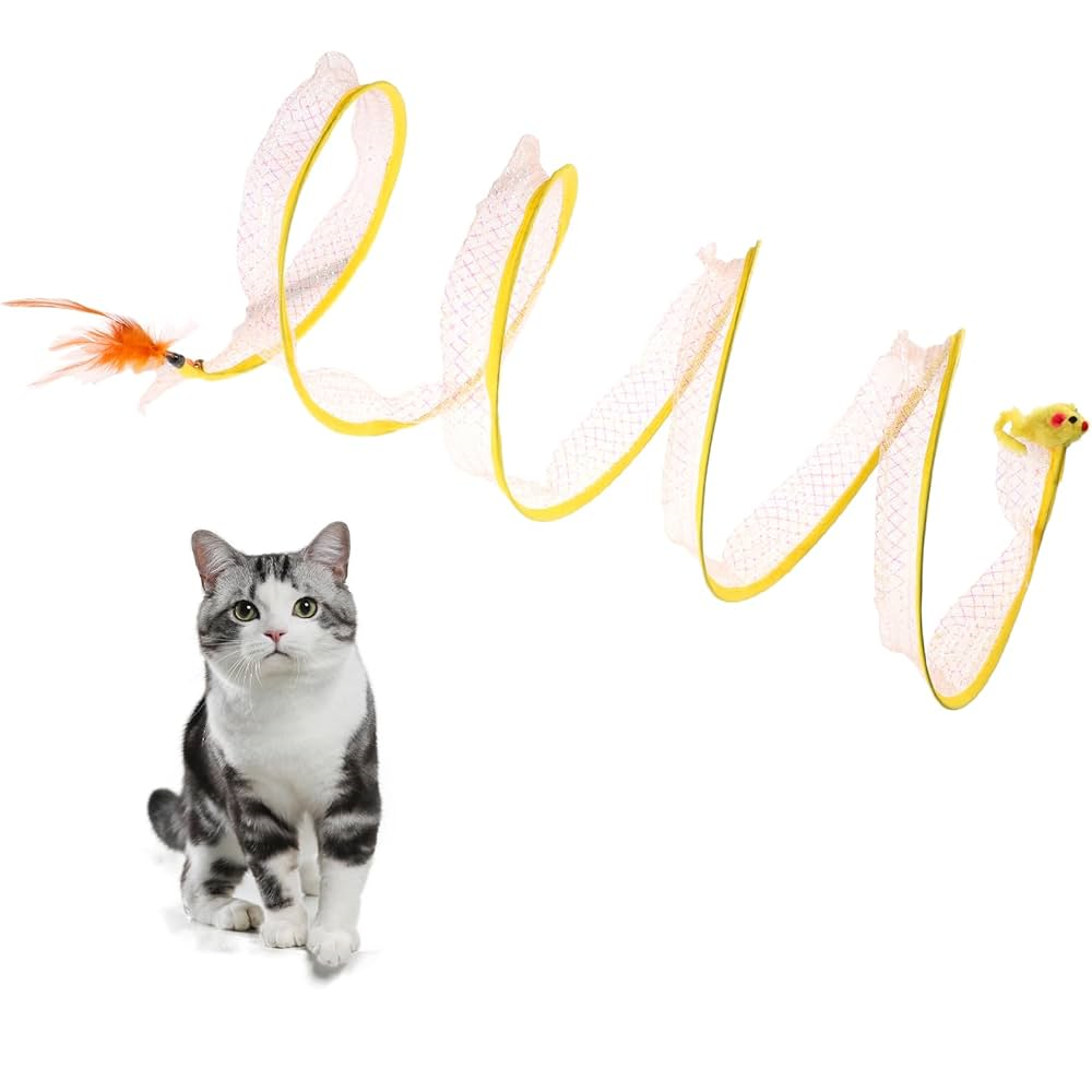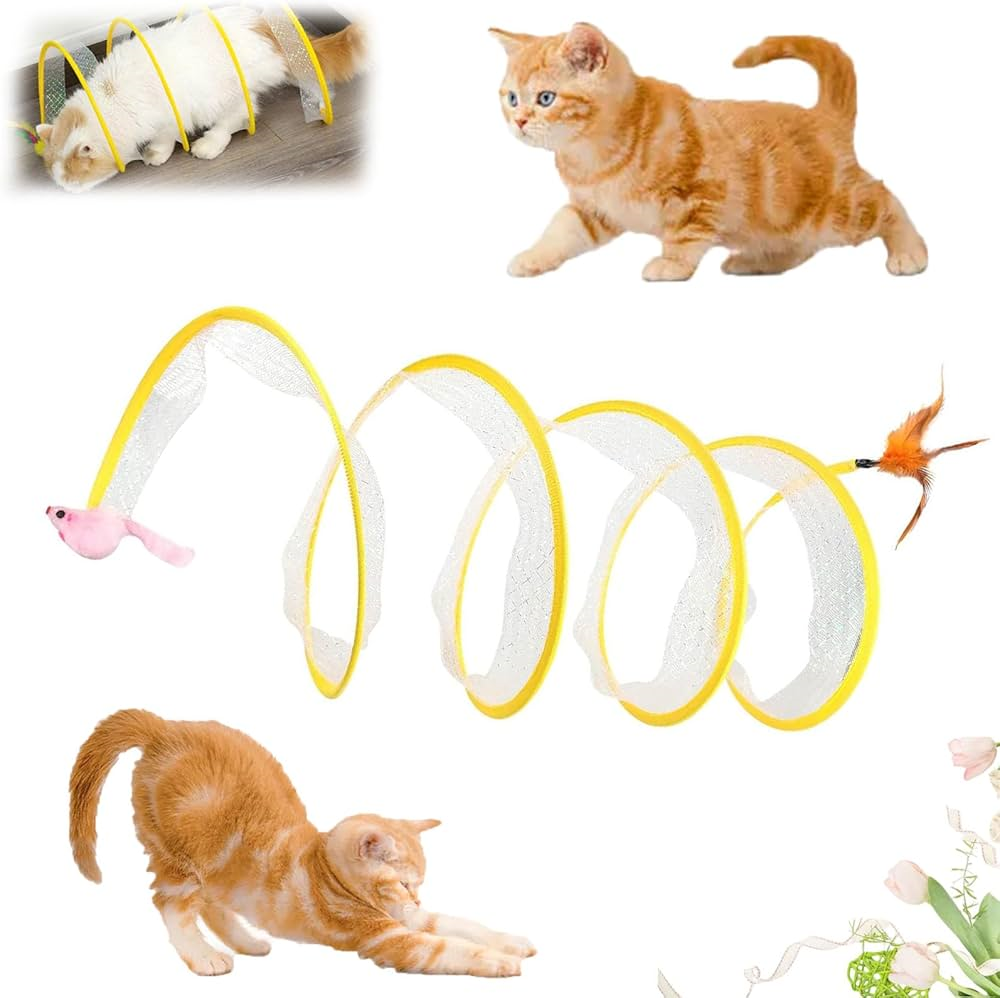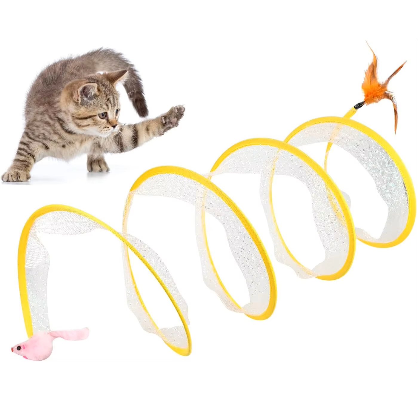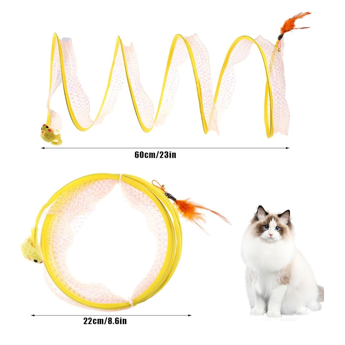 - Juega a la diversión: Los gatos son libres de transportar y jugar en el túnel, con juguetes de campana dentro de la red para atraer la atención, e incluso bolas de sisal y ratones de peluche que acompañan a los gatos a jugar.