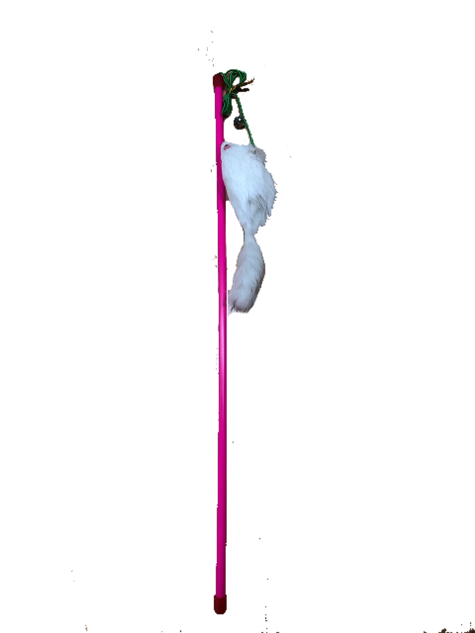Este tipo de juguetes para gatos es básicamente una cuerda con un incentivo (presa) en un extremo, este último puede variar dependiendo de las preferencias de tu gato; puede ser que tenga plumas, una pelota, un ratón, etc