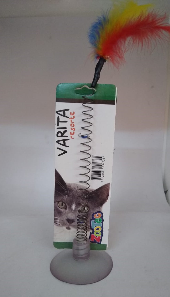 * Cañita de juguete vaivén con resorte, sopapa, plumas y cascabel para gatos.