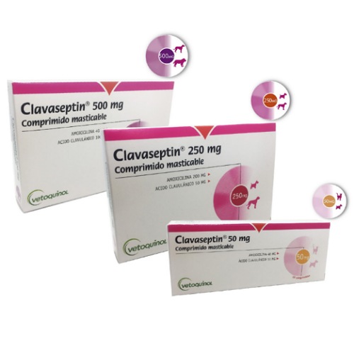 Clavaseptin es un antibiótico veterinario de amplio espectro en tabletas palatables que combina amoxicilina y ácido clavulánico. Se utiliza para tratar infecciones causadas por bacterias sensibles, incluyendo las de la piel (heridas, abscesos), oídos, vías respiratorias (infecciones, pioderma), vías urinarias y digestivas (enfermedad periodontal) en perros y gatos.