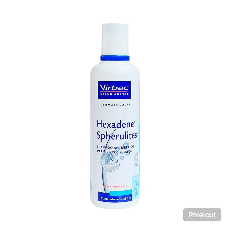 Para su uso en perros y gatos. El amplio espectro de la clorhexidina y su baja toxicidad hacen de Hexadene® Spherulites un atiséptico de elección para la curación de heridas en la piel*, lavado pre-quirúrgico*, piodermias, como adyuvante en infecciones por Melassezia pachydermatis y hongos.