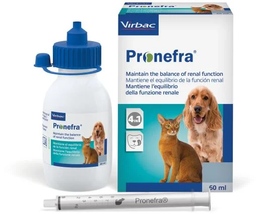 El complemento alimenticio para perros y gatos Virbac Pronefra para la función renal es una fórmula muy sabrosa que ayuda a perros y gatos con insuficiencia renal crónica y problemas urinarios y renales. Virbac Pronefra contiene 5 ingredientes como le aceite de oliva o le aceite de coco, y tiene una acción polivalente: