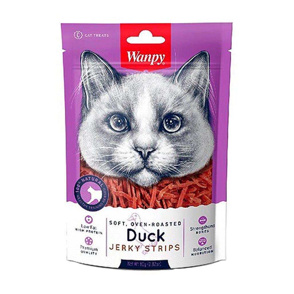 Wanpy Duck Jerky Strips es un snack para gatos 100% natural en forma de pequeñas tiritas de irresistible carne de pato.